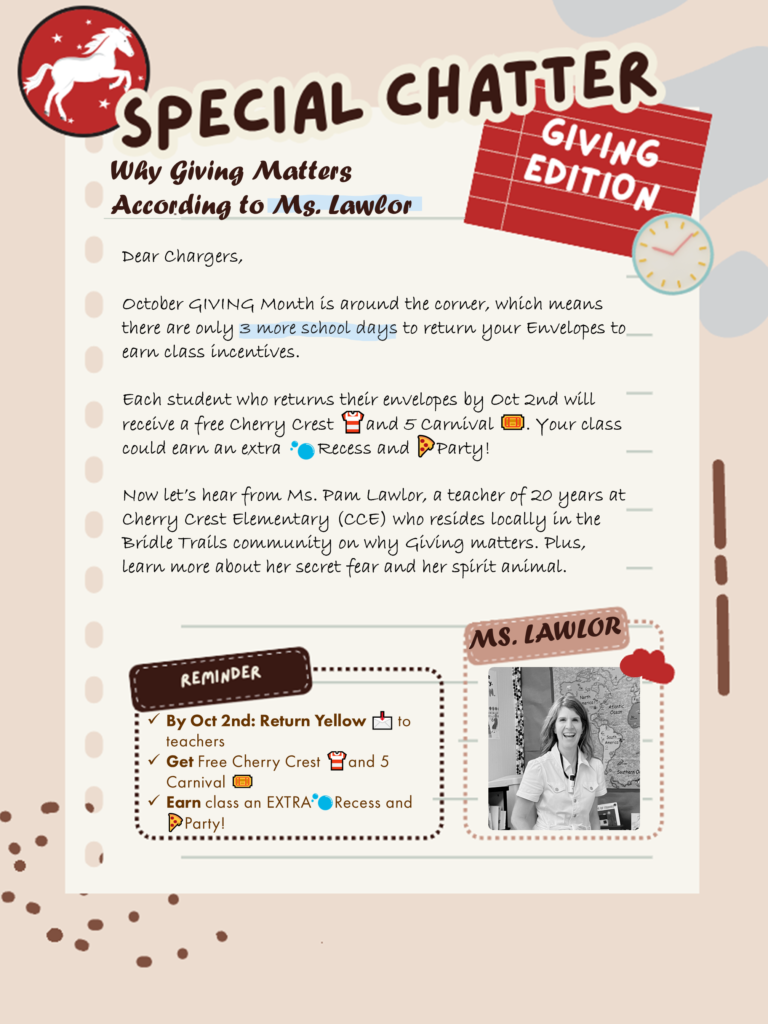 The Cherry Crest Special Chatter highlights special events, people, and announcements, connecting families, parents, and our community.